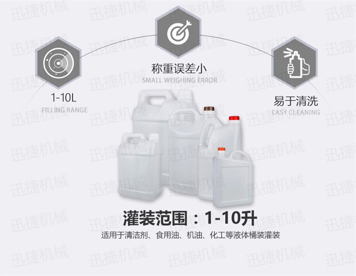 特點(diǎn):定量灌裝,和瓶蓋旋蓋,在一臺(tái)機(jī)器上完成。具有占地空間小,自動(dòng)化程度高特點(diǎn)工作流程:液體灌裝頭自動(dòng)定位定量灌裝,機(jī)器灌裝完成1-10升的灌裝,隨即進(jìn)入下一個(gè)工位,震盤自動(dòng)理蓋,自動(dòng)上蓋,自動(dòng)旋緊瓶蓋。整個(gè)生產(chǎn)過(guò)程只需要人工放空桶。提升工作效率,降低勞動(dòng)強(qiáng)度。