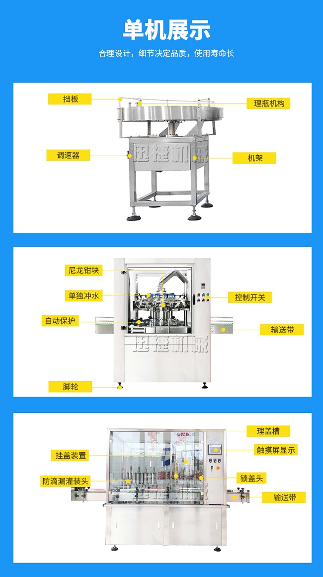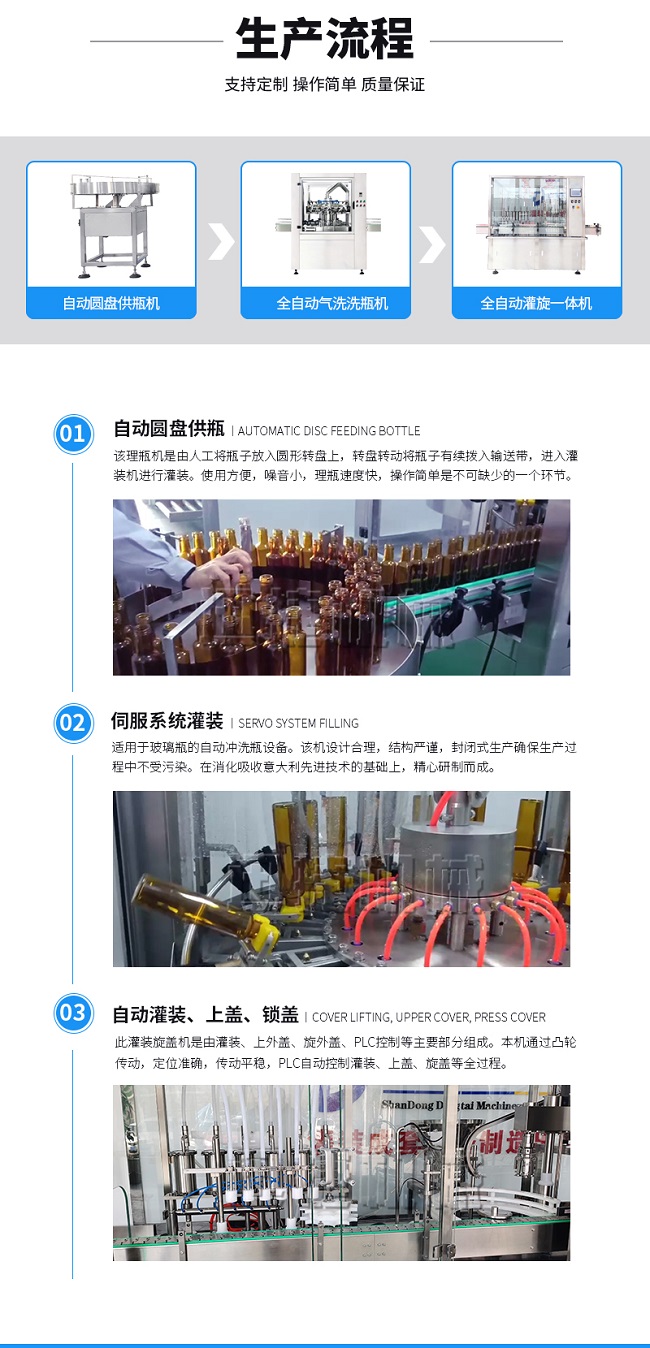 本灌裝流水線設(shè)備具有穩(wěn)定可靠、自動化水平高,相比同類產(chǎn)品有著更長的使用年限,維護簡單,整線中各設(shè)備的協(xié)調(diào)性、連貫性強,整線設(shè)計合理等特點。灌裝設(shè)備采用系統(tǒng)結(jié)構(gòu),為當今行業(yè)內(nèi)水平,整線滿足量產(chǎn)化、集成化生產(chǎn)的需要。